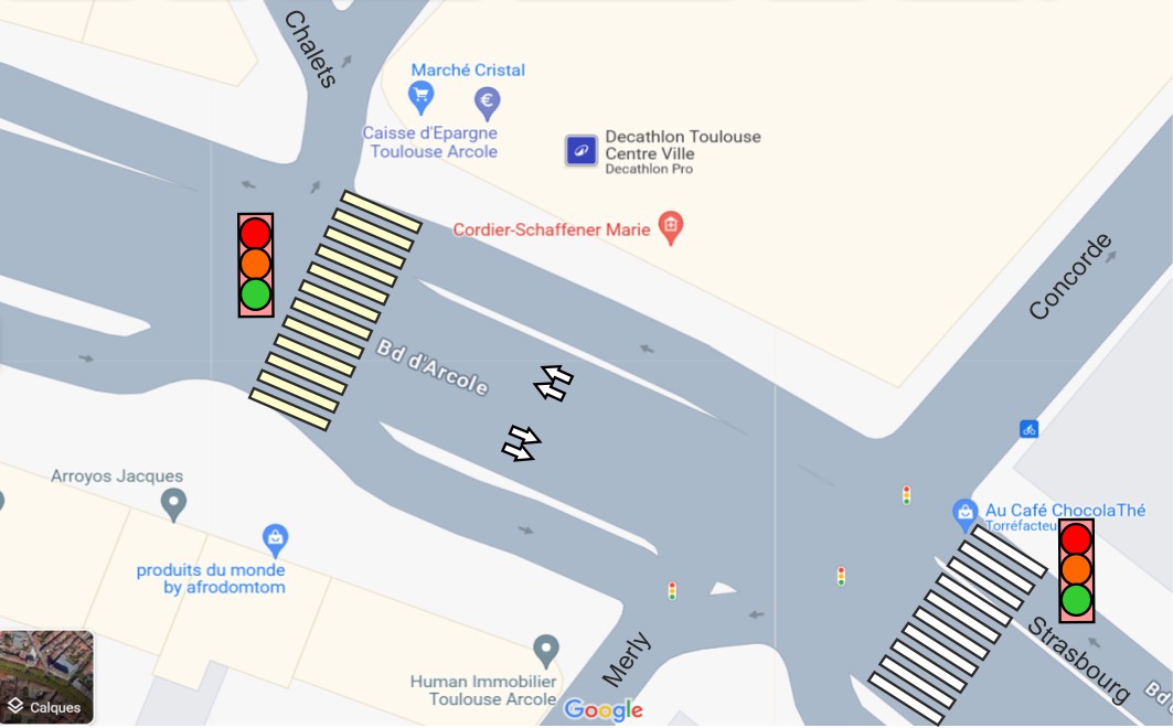 Modes de déplacement doux Quartier dense, aux rues et aux trottoirs étroits, notre quartier se prête mal à la cohabitation des piétons et vélos avec les voitures et les autres modes de déplacement motorisés plus rapides. Vélos Le double sens cyclable a été instauré en 2009, peu après la zone 30. Une facilité pour les vélos qui peuvent emprunter un trajet plus direct, sans se faire klaxonner par les voitures et une méthode appréciée de tous pour faire ralentir les voitures dans notre quartier. Cependant, peu de pistes cyclables sont présentes aux Chalets. Pour se rendre au commissariat, il faut traverser le canal en empruntant les passerelles bosselées inadaptées à vélo… comme avec une poussette. Sur notre côté du canal, la « piste cyclable » a été délimitée sur la voie routière par de la peinture verte, qui s’efface d’ailleurs peu à peu. Mais la vitesse des voitures qui doublent les cyclistes est telle que la plupart des vélos préfèrent emprunter le bord du canal réservé aux piétons ou, le long des immeubles, le large trottoir… envahi par les voitures stationnées. A l’instar de ce qui a été réalisé sur l’autre rive, une vraie piste cyclistes/piétons menant dans les deux directions est donc nécessaire. En 2022, la rue Falguière a été baptisée Vélorue : les cyclistes y sont prioritaires, les voitures n’ont pas le droit de les doubler. Nous n’avons pour l’instant aucun recul sur l’efficacité d’une telle mesure restée confidentielle à la plupart des usagers. Piétons Pas facile pour les piétons munis d’une poussette ou les personnes à mobilité réduite, de slalomer sur les trottoirs étroits (inférieurs aux normes de 1,40 m), parfois encombrés de poteaux de signalisation et de poubelles. La plupart du temps, les déplacements se font sur la chaussée, en concurrence avec les voitures et deux-roues. Depuis plusieurs années, nous demandons que les rues, comme la rue Matabiau, dont la largeur des trottoirs ne permet pas d’assurer la continuité en fauteuil roulant ou avec une poussette passent en zone 20. Sur la chaussée, certains coussins berlinois en plastique rouge, installés en 2009 lors de la période test de la zone 30, sont toujours là. Par temps de pluie et de neige, ils deviennent glissants et sont dangereux tant pour les cyclistes qui ne peuvent rouler à côté en raison de l’étroitesse de la chaussée que pour les piétons, parfois obligés de quitter le trottoir. Plusieurs chutes ont été déplorées. Quand seront-ils remplacés par les ralentisseurs en enrobé noir et blanc promis plus fiables ? Deux passerelles sont empruntées par les habitants pour traverser la canal : la passerelle Negreneys et la passerelle du Raisin. Nous demandons l’amélioration du revêtement de ces deux passerelles difficiles d’utilisation lorsque l’on a une poussette ou un vélo. Enfin, nous espérons que le projet de passerelle Concorde, qui reliera notre quartier au nouveau quartier Grand Matabiau Quai d’Oc, sera programmée dès que possible. Elle figurait dans les promesses de campagne du candidat Moudenc.