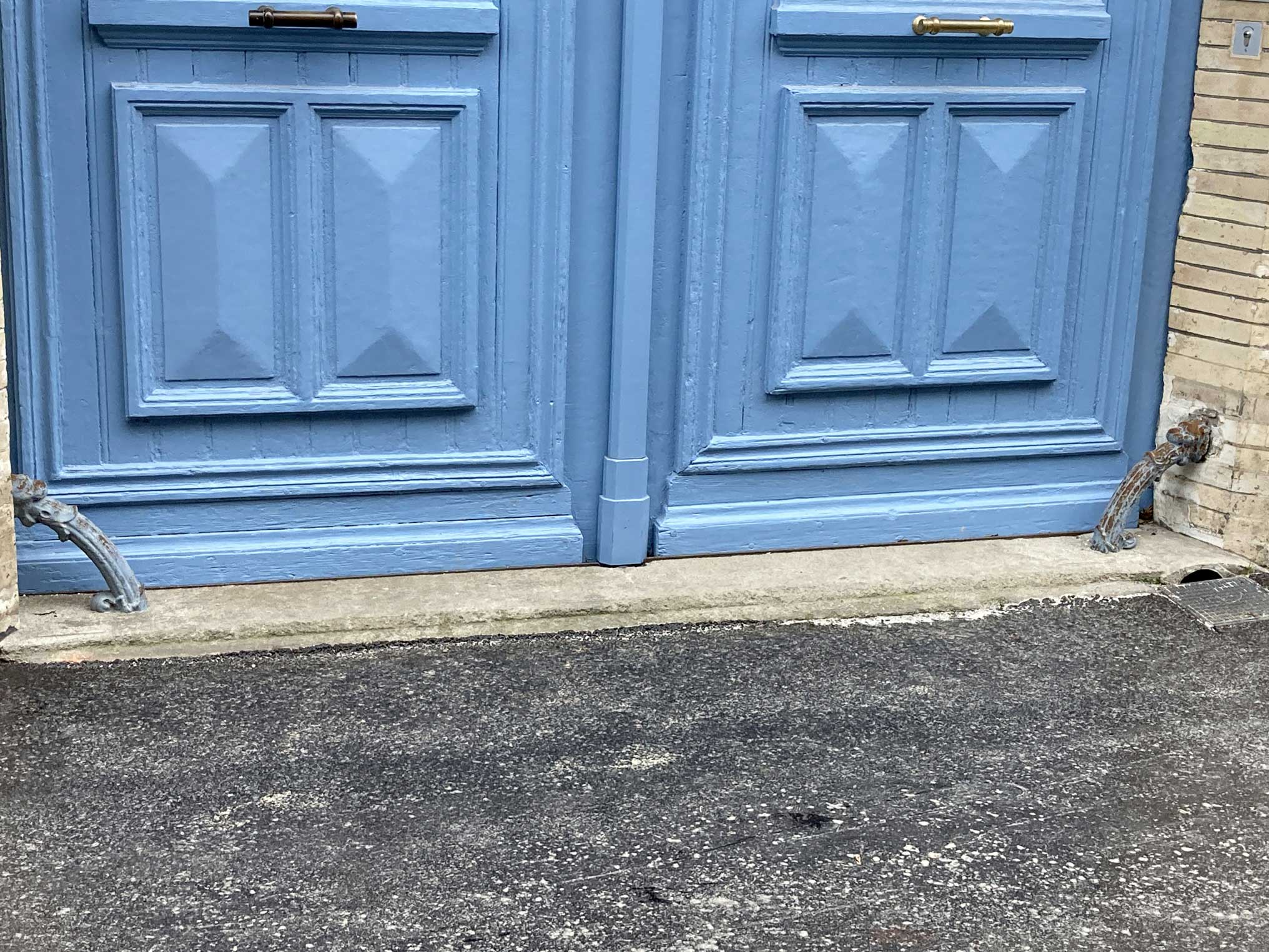 Il est certain qu’en ville, les chasse-moyeux sont devenus obsolètes depuis longtemps. Mais, construits sous forme d’un arceau en métal plein ou en pierre, ils sont difficiles à détruire ou gardés parce que familiers. Ils sont devenus insolites à nos yeux parce que nous oublions peu à peu qu’ils existent et quel était leur intérêt. Ils font pourtant partie de ces petits patrimoines qui font la mémoire de nos rues. Amusez-vous à les chercher du regard… vous verrez que certains vous réservent quelques belles surprises (photo 12 lieu privé tenu secret).