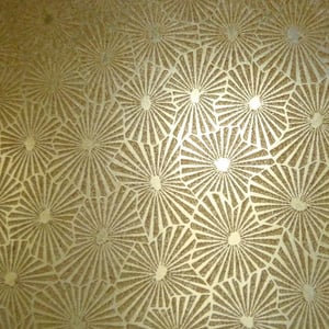 • mécanique par passage à la sortie du four sous un rouleau métallique qui porte le relief ainsi reproduit de façon répétitive. Si le verre a été préalablement enduit d’une couche d’émail on peut obtenir, comme avec de l’acide, des dessins répétitifs (verre mousseline).